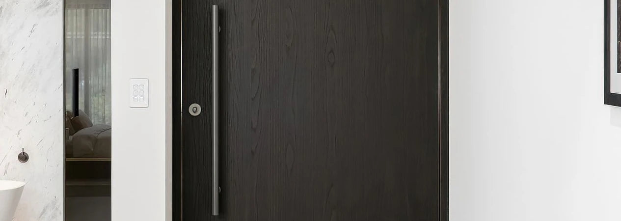 This streamlined and elegant handle is a straightforward and effortless solution for a door handle. In the polished finish option, the material enhances the verticality and the illusion that a continuous extruded piece of metal is complete.