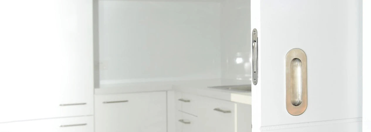 Flush Pull Function: Intended for use on sliding doors due to the need for these doors to slide in front of each other or back into a slot, thus eliminating the need for a handle that protrudes from the surface of the doors.